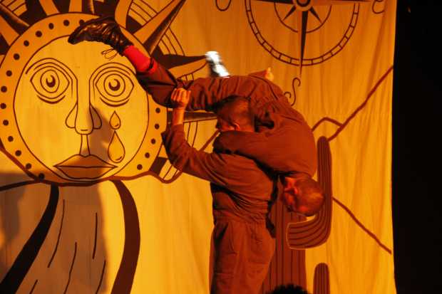 En El Galpón de Bellas Artes 22 actores interpretaron la historia de un hombre abandonado en el desierto que pasa por dificultades, debido a la impotencia que siente por no poder salir del lugar. Al final, resuelve resignarse y tratar de entender el mundo de otra manera, encontrando atractivos en las situaciones que vive. Así lograron encontrar la libertad.