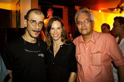 El músico Harlinson Lozano escribió en Facebook: "Anoche, una noche muy especial como cada miércoles, solo que esta vez tuvimos una visita inesperada, la actriz Hilary Swank, dos veces ganadora de los premios Óscar, viendo en vivo y en directo a la Punto Bare Big Band".