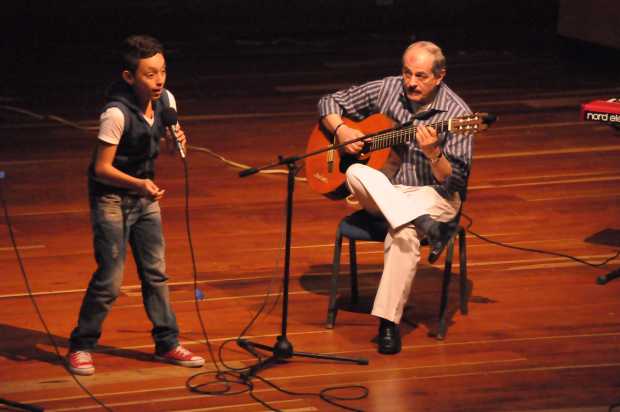 El momento más emotivo en el recital de la Universidad Nacional fue cuando subió al escenario Juan Sebastián Serna, ganador de la primera versión del concurso Mega Estrella Fundadores, quien interpretó el bambuco Mi País, con el acompañamiento de Guillermo Calderón, su autor. El público se paró de los asientos y los ovacionó.