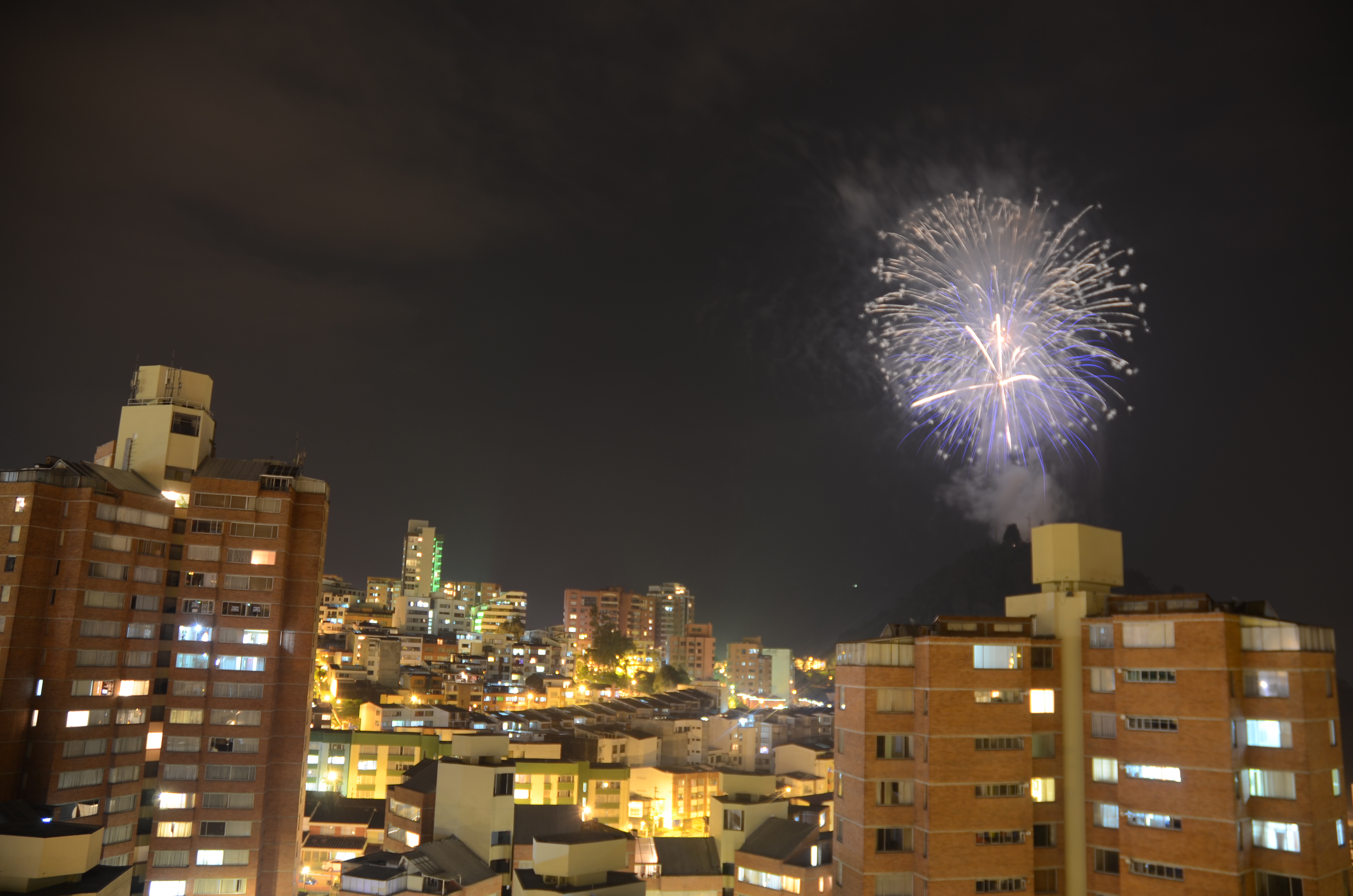 El tradicional espacio de juegos pirotécnicos se cumplió ayer en la noche. La gente se buscó el mejor espacio.