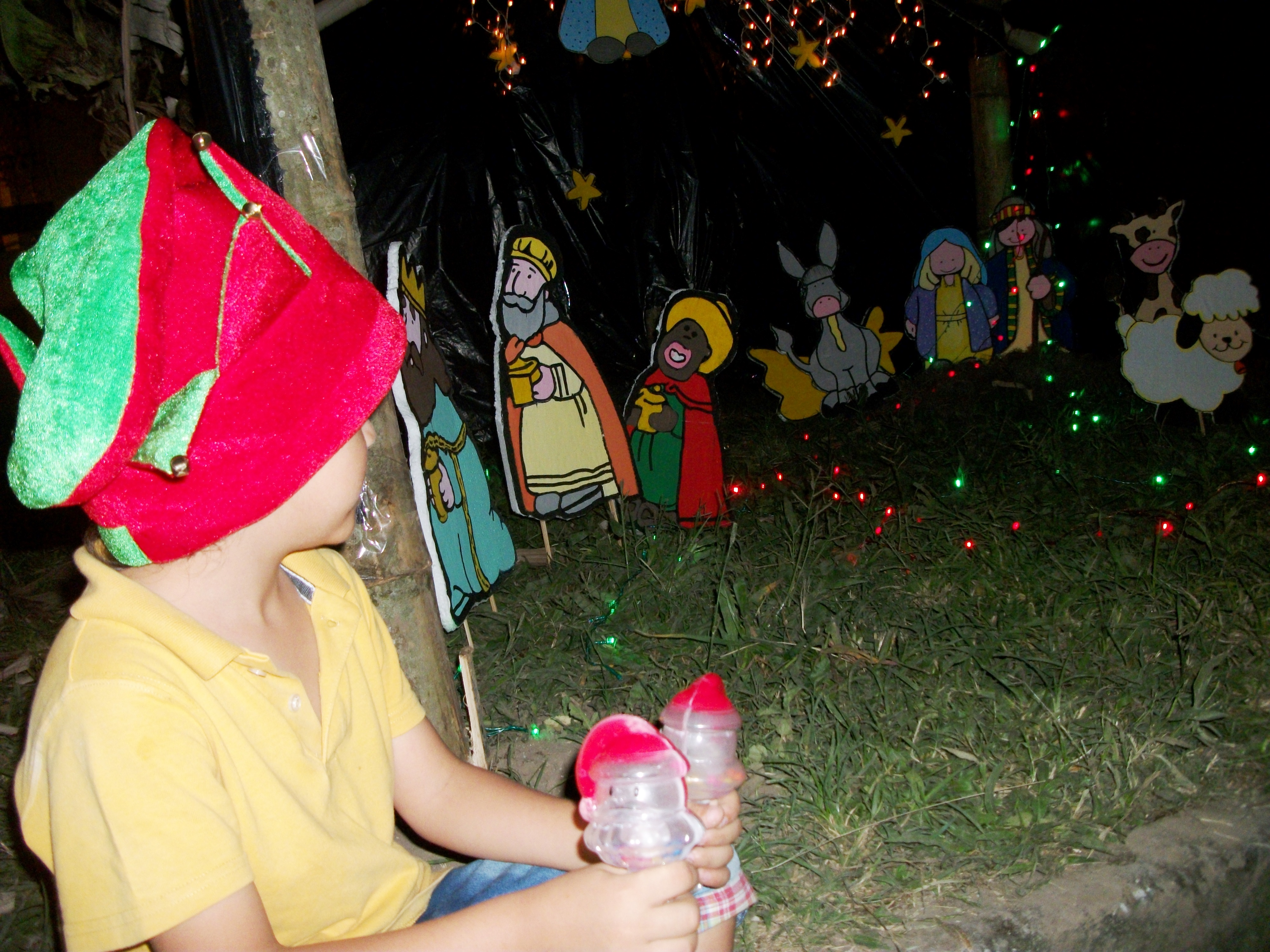 Mientras tanto, Juan José Díaz se paró junto al pesebre y acompañó los villancicos con sus cascabeles verde, rojo y blanco. Los adultos también aplaudían, y los más pequeños esperaban con ansias que se terminara la novena para que les dieran dulces.