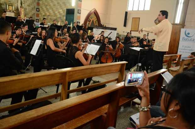 Dos perros se paseaban entre las bancas de los asistentes y los puestos de los músicos durante la interpretación de una pieza musical. Mientras los espantaban, tratando de no incomodar a los intérpretes, algunas mujeres jóvenes les pedían a sus que hijos que hicieran silencio, y un papá, que llegó solo con su hijo, trataba de explicarle los instrumentos para captar su atención sobre la orquesta. Los mayores, algunos solos y otros acompañados que seguían llegando se iban acomodando con timidez entre las bancas de atrás.
